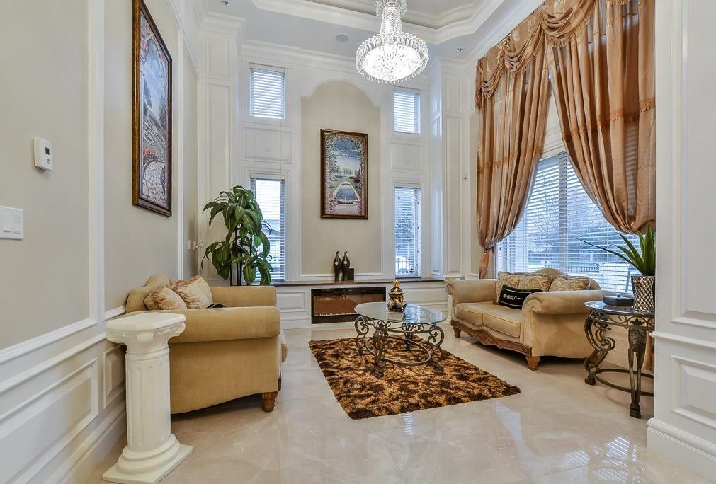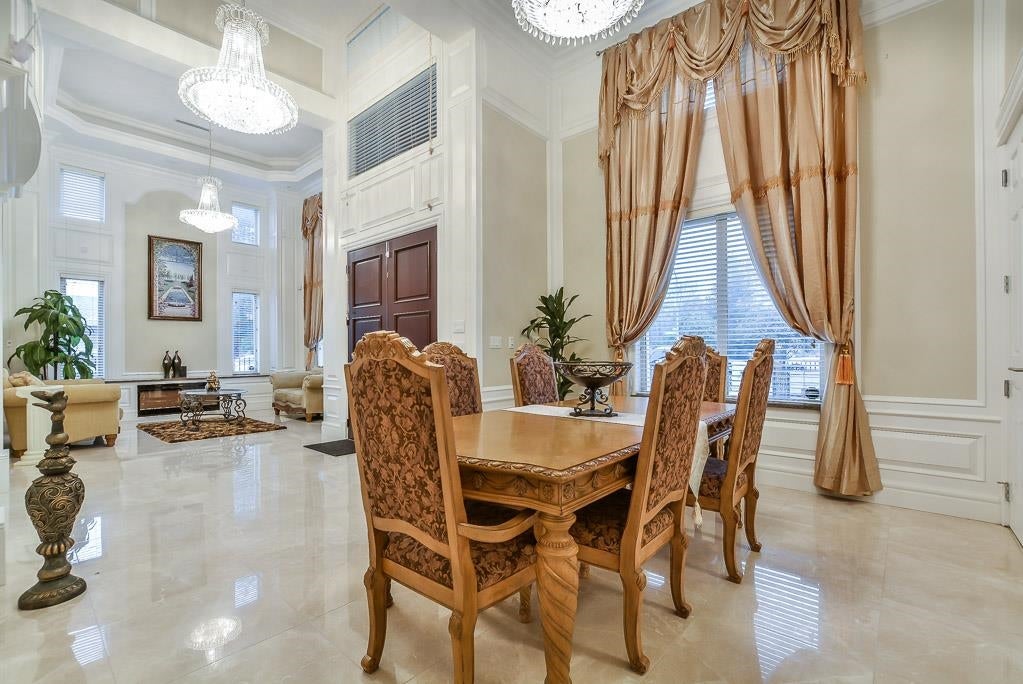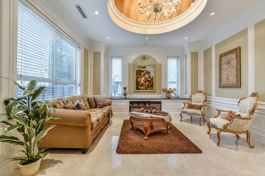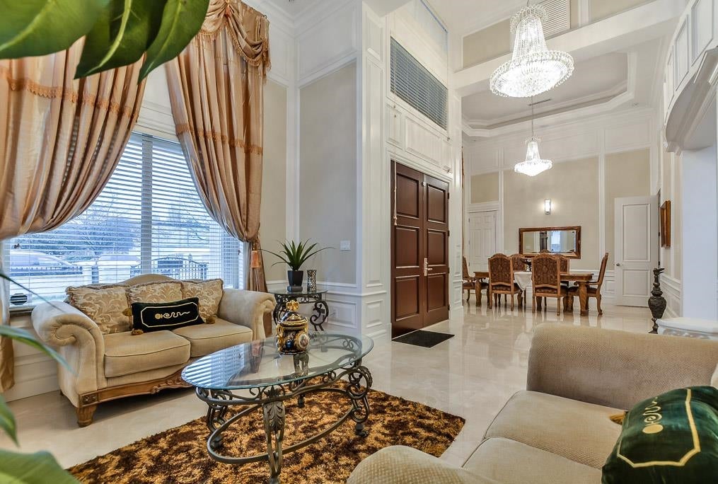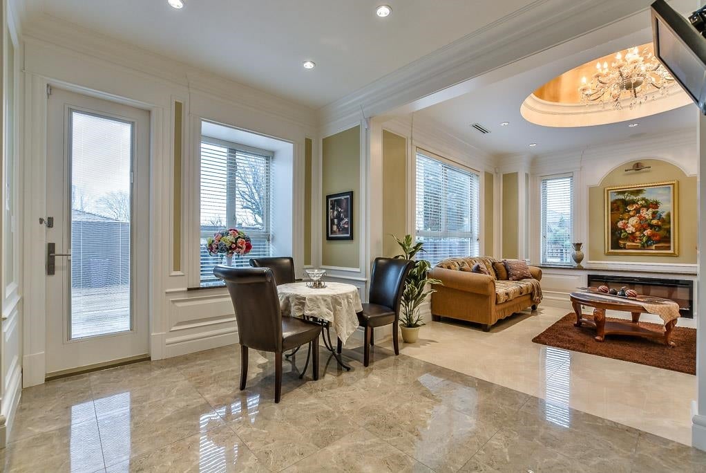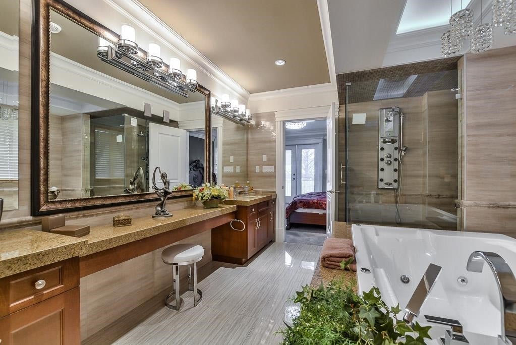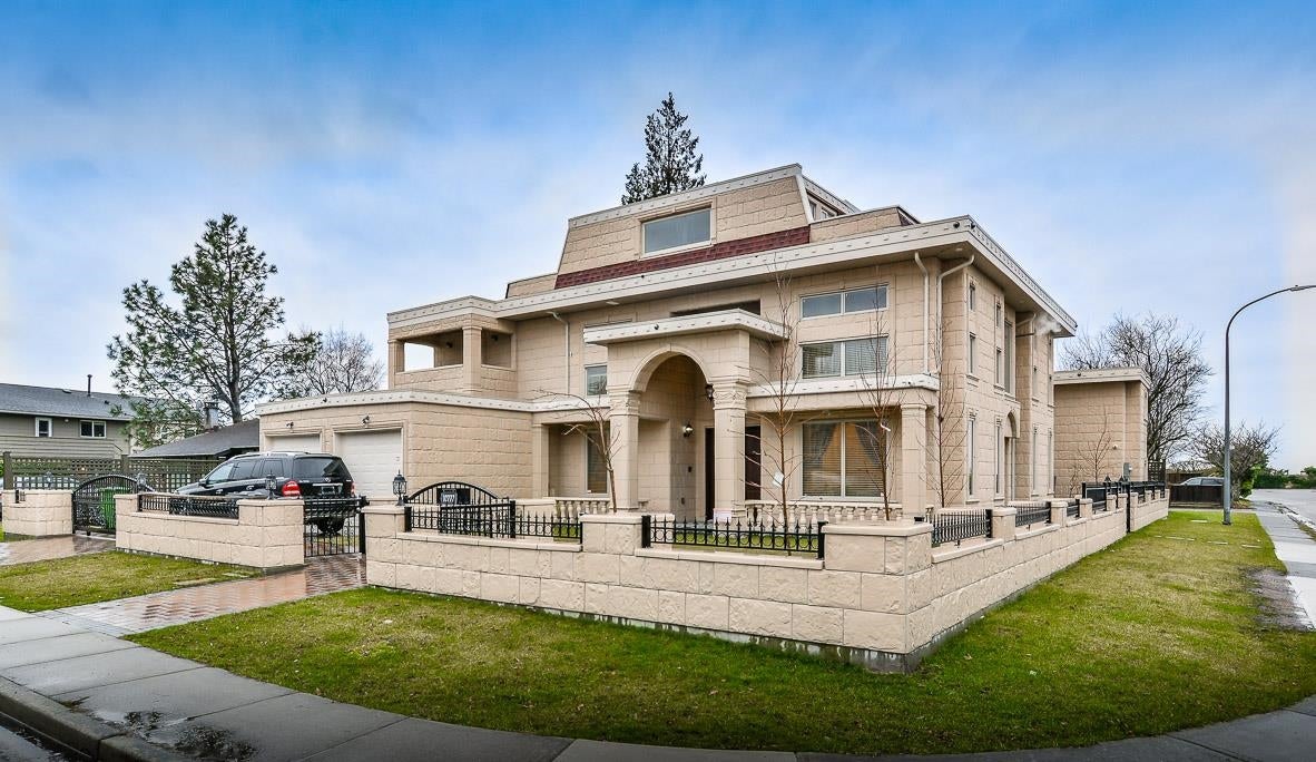 Very Unique outstanding custom built Mediterranean Style home in the most prestige Stevenson North area overlook the ocean. Corner lot, all stoned ecorated 3 level plus a separate accessory building close to 4500sq interior and over 2100sq out door space. Luxury finishing inside & out with 16'4 ceiling in the living and dinning area, custom made library, elevator, dome ceiling, gym, home office, home theater, nanny suite, high tech alarm system, lots of LED color lighting, 900sq huge patio at the back; Every room has its own ensuite and balcony plus roof top deck with fantastic ocean view, total deck area is over 1200sq made this home so unique that you never see in Richmond. School catchment: Steves Elementary &Boyd Secondary and quite, safe & friendly neighborhood walk distance to Ocean.