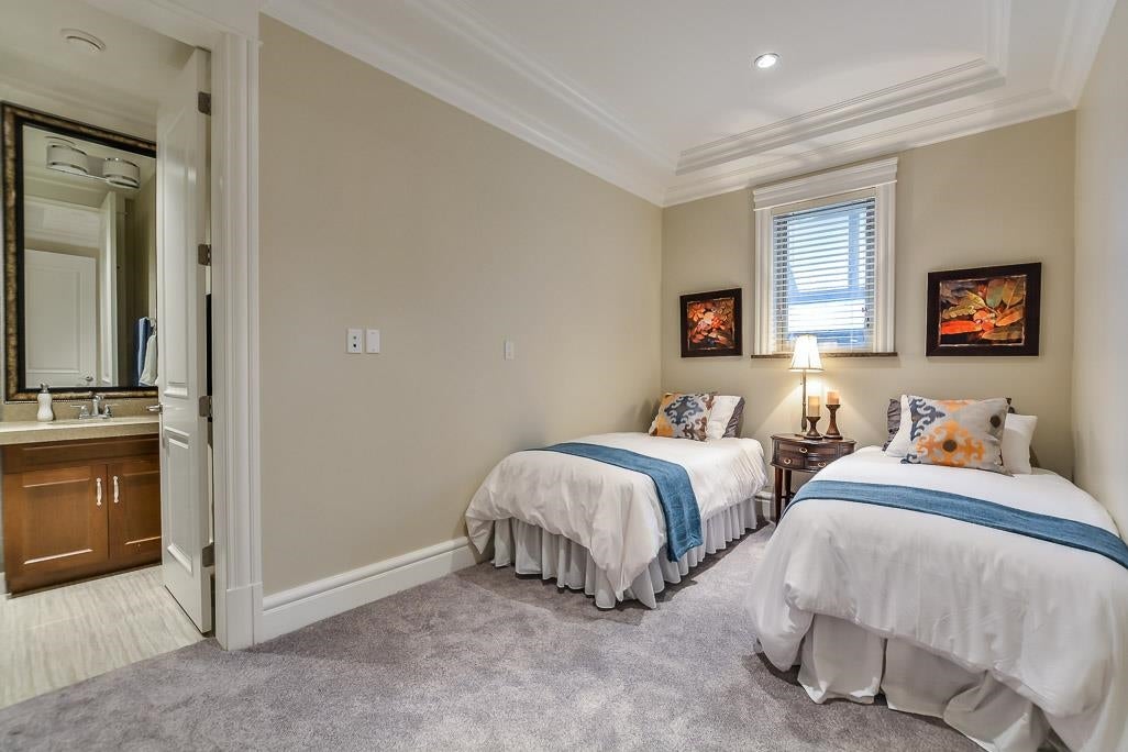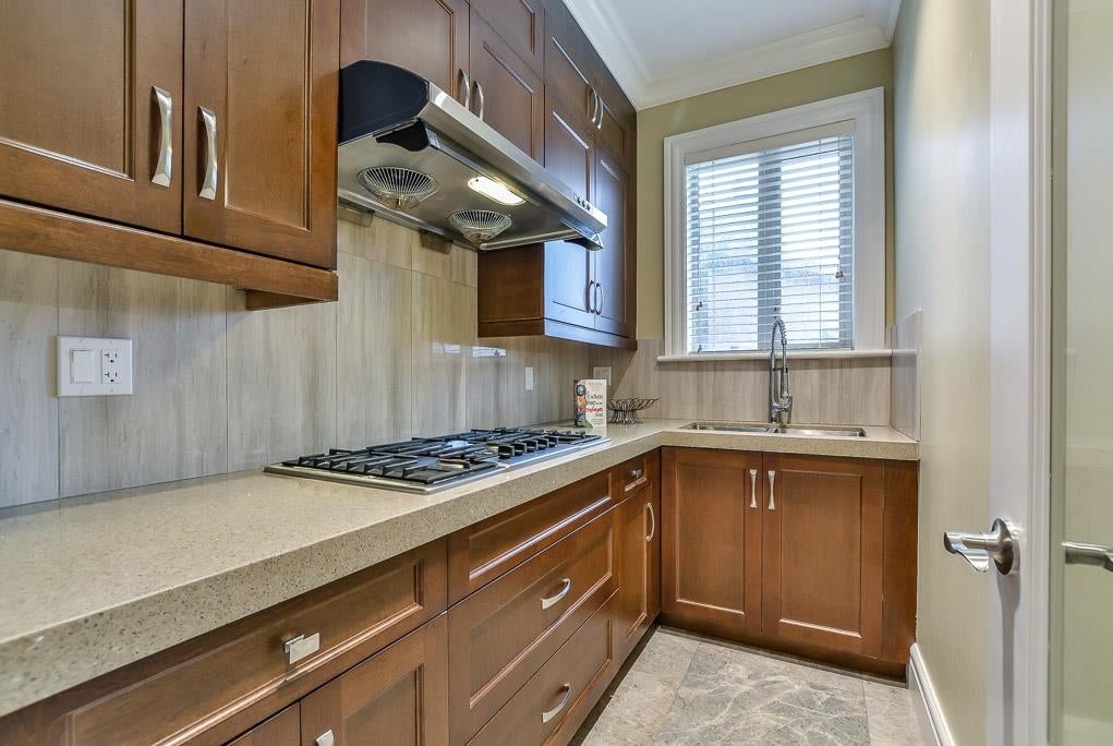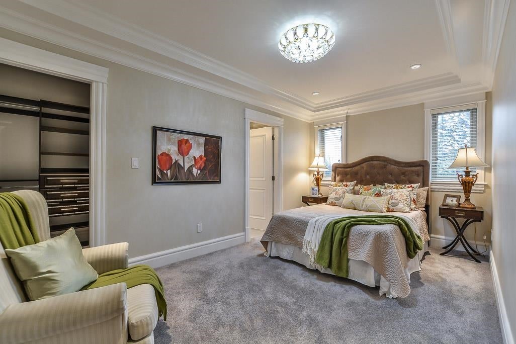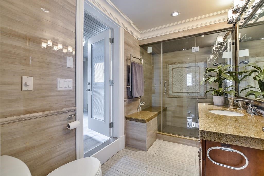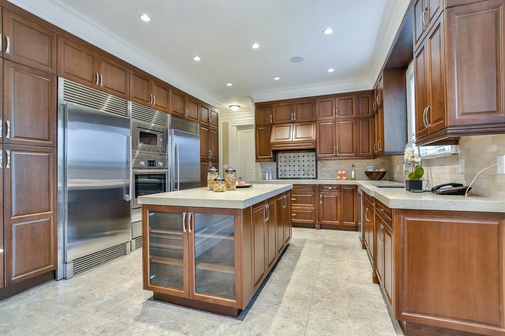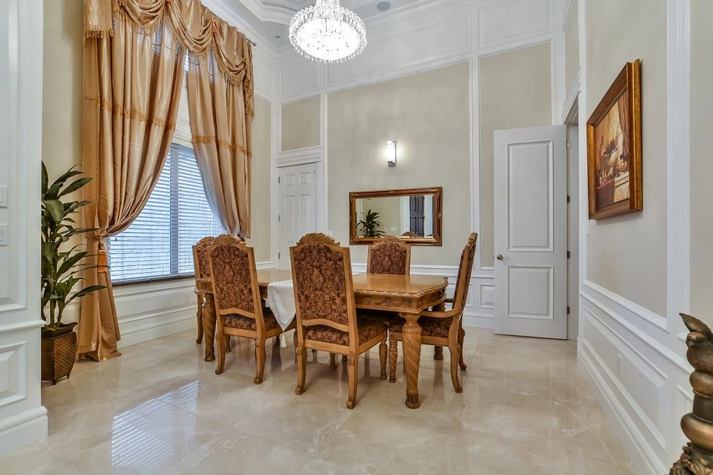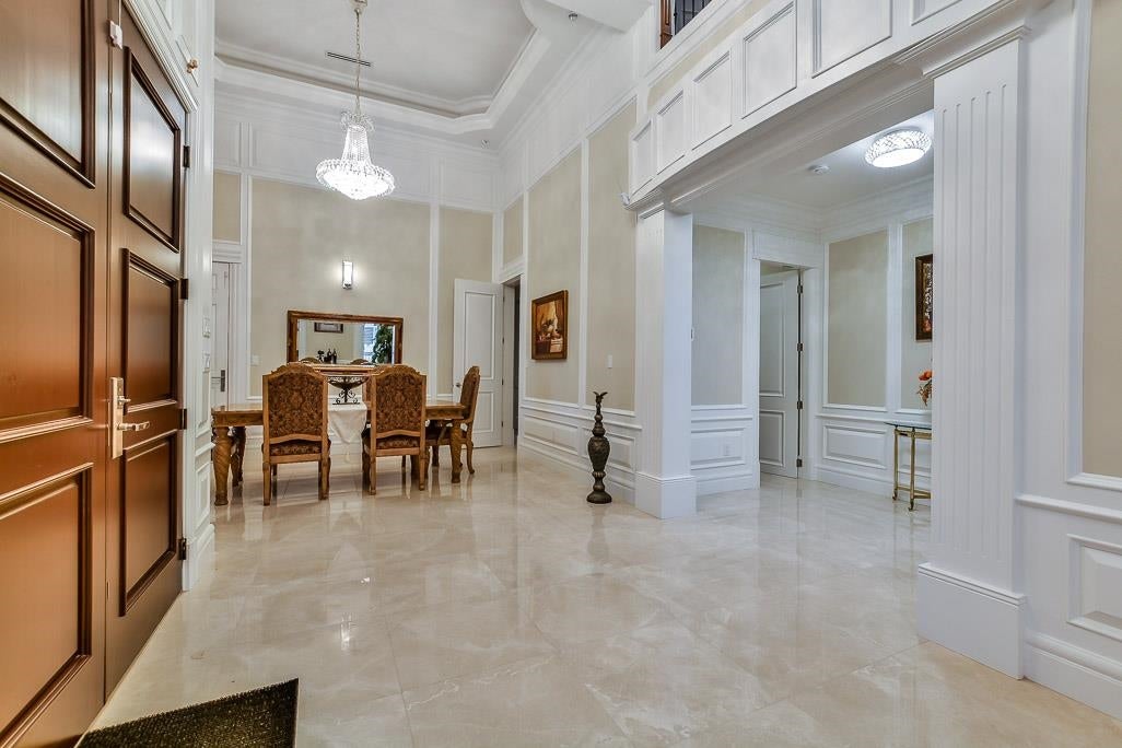 Very Unique outstanding custom built Mediterranean Style home in the most prestige Stevenson North area overlook the ocean. Corner lot, all stoned ecorated 3 level plus a separate accessory building close to 4500sq interior and over 2100sq out door space. Luxury finishing inside & out with 16'4 ceiling in the living and dinning area, custom made library, elevator, dome ceiling, gym, home office, home theater, nanny suite, high tech alarm system, lots of LED color lighting, 900sq huge patio at the back; Every room has its own ensuite and balcony plus roof top deck with fantastic ocean view, total deck area is over 1200sq made this home so unique that you never see in Richmond. School catchment: Steves Elementary &Boyd Secondary and quite, safe & friendly neighborhood walk distance to Ocean.